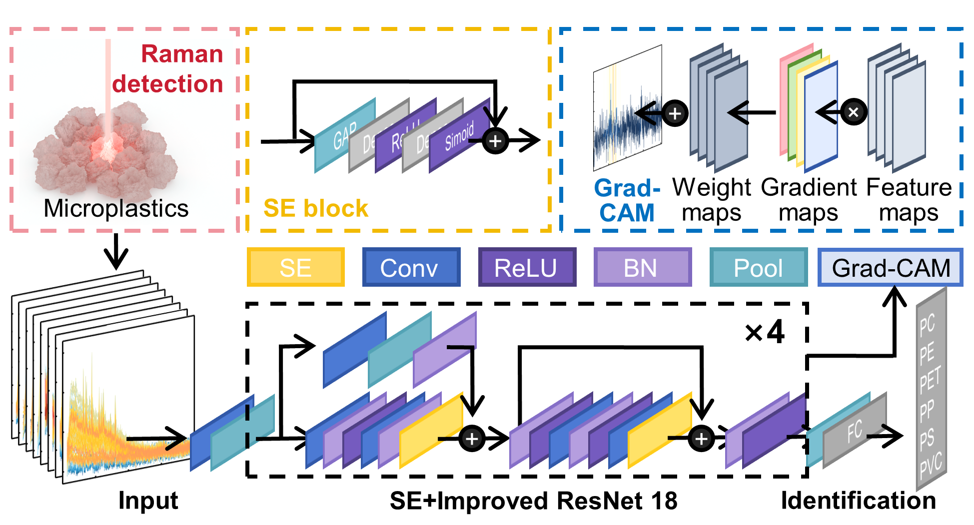 基于改進殘差網絡的微塑料拉曼光譜分類的示意圖