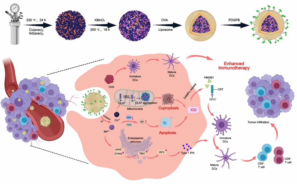 研究表明,pLCGM-OVA借助卵清蛋白的免疫疫苗功效,輔以活性氧和銅死亡誘導腫瘤細胞發生免疫原性細胞死亡,協同增強了抗腫瘤免疫效應,顯著抑制了黑色素瘤的生長。此外,pLCGM-OVA還展現出優異的磁共振成像性能,為黑色素瘤的診斷治療一體化提供了有力工具。