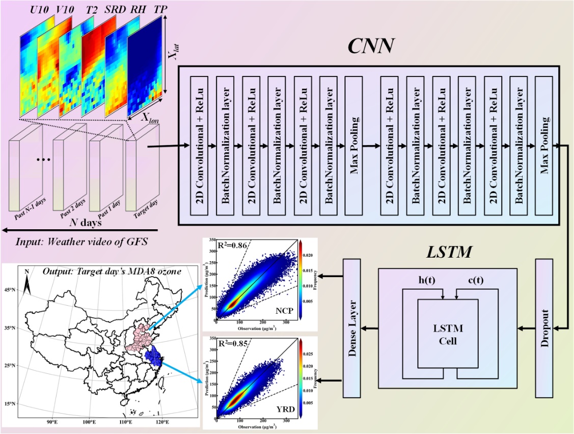 近期,中國科學院合肥物質院安光所謝品華研究員團隊在國際環境領域TOP期刊《環境科學與技術》(Environmental Science & Technology)上發表文章( “以中國華北平原與長三角為例,建立區域氣象過程和臭氧濃度日際變化的映射模型”)。科研人員基于可融合天氣過程時空演變特征的序列卷積長短期記憶網絡框架(CNN-LSTM),建立了華北平原和長三角地區臭氧濃度日際變化預測模型,為臭氧污染預警提供了新的技術手段。