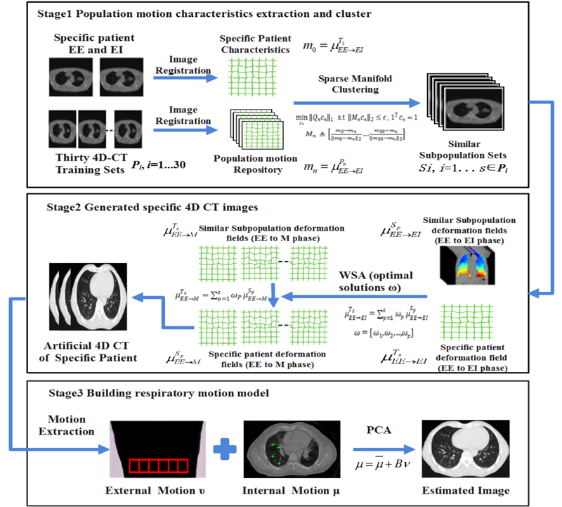 群體特征加權稀疏(PCWS)呼吸運動補償模型流程圖