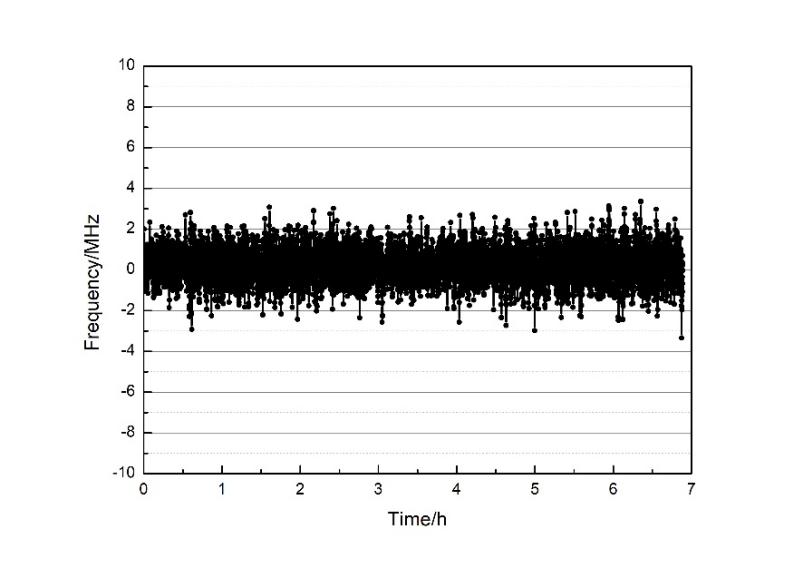 研究團隊采用了環形諧振腔結構結合碘分子吸收頻率鎖定技術,實現了單頻激光的頻率長期穩定性。該技術通過將激光頻率鎖定在碘分子特定吸收譜線的側翼,利用反饋控制調整諧振腔的長度,實現了激光頻率的高精度穩定。結果顯示:激光器輸出激光光束質量優異,M2因子分別在1.05(水平方向)和1.19(豎直方向),表明其具有良好的空間分布特性;輸出激光線寬小于10兆赫茲,顯示出良好的單頻特性;自由運轉狀態下,一定時間內激光器頻漂超過了200兆赫茲。而鎖定狀態下,激光器連續運行7小時頻漂控制在±4兆赫茲以內,顯著提高了頻率穩定性。另外,為了適應未來的設備集成,激光器小型化、穩定性等需求,實現了連續單頻激光器基于光機熱電耦合的工程化設計與激光器系統搭建。