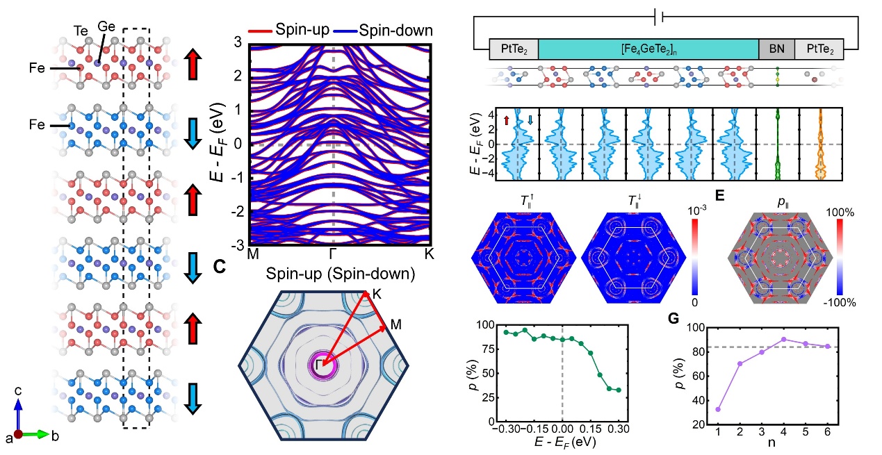 圖2. 自旋簡并的A型范德華反鐵磁體Fe4GeTe2及其界面自旋極化。
