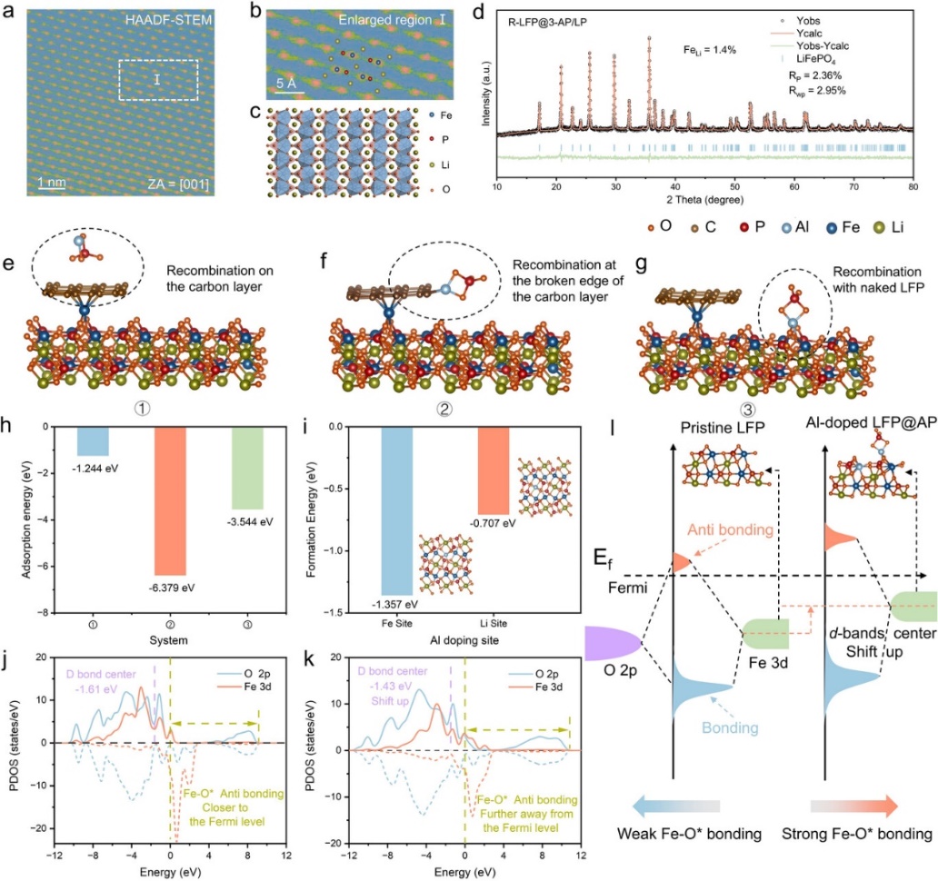 圖2. 再生磷酸鐵鋰的綜合結構表征結果。