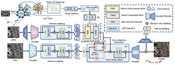 遙感圖像全色銳化技術旨在融合低分辨率的多光譜(LRMS)圖像與高分辨率的全色(PAN)圖像,以生成兼具高空間分辨率和豐富光譜信息的遙感影像。盡管由文本引導的多模態學習方法在自然圖像領域已經取得了顯著進展,但由于全色銳化領域多模態數據集的缺乏,以及遙感場景的復雜性等問題,為語義信息的準確提取帶來了巨大挑戰。