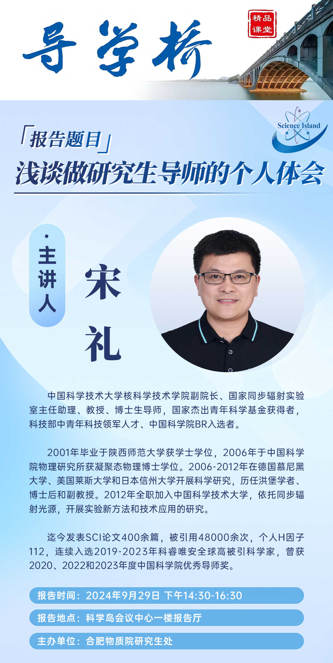第七期課程特邀中國科學技術大學核科學技術學院宋禮教授開講,安排詳見文末海報,請全體導師積極參與,如不能出席,請?zhí)崆鞍l(fā)送請假信息至郵箱zhulj@hfcas.ac.cn或致電65592990告知,以便我們做好會務協(xié)調(diào)工作。?