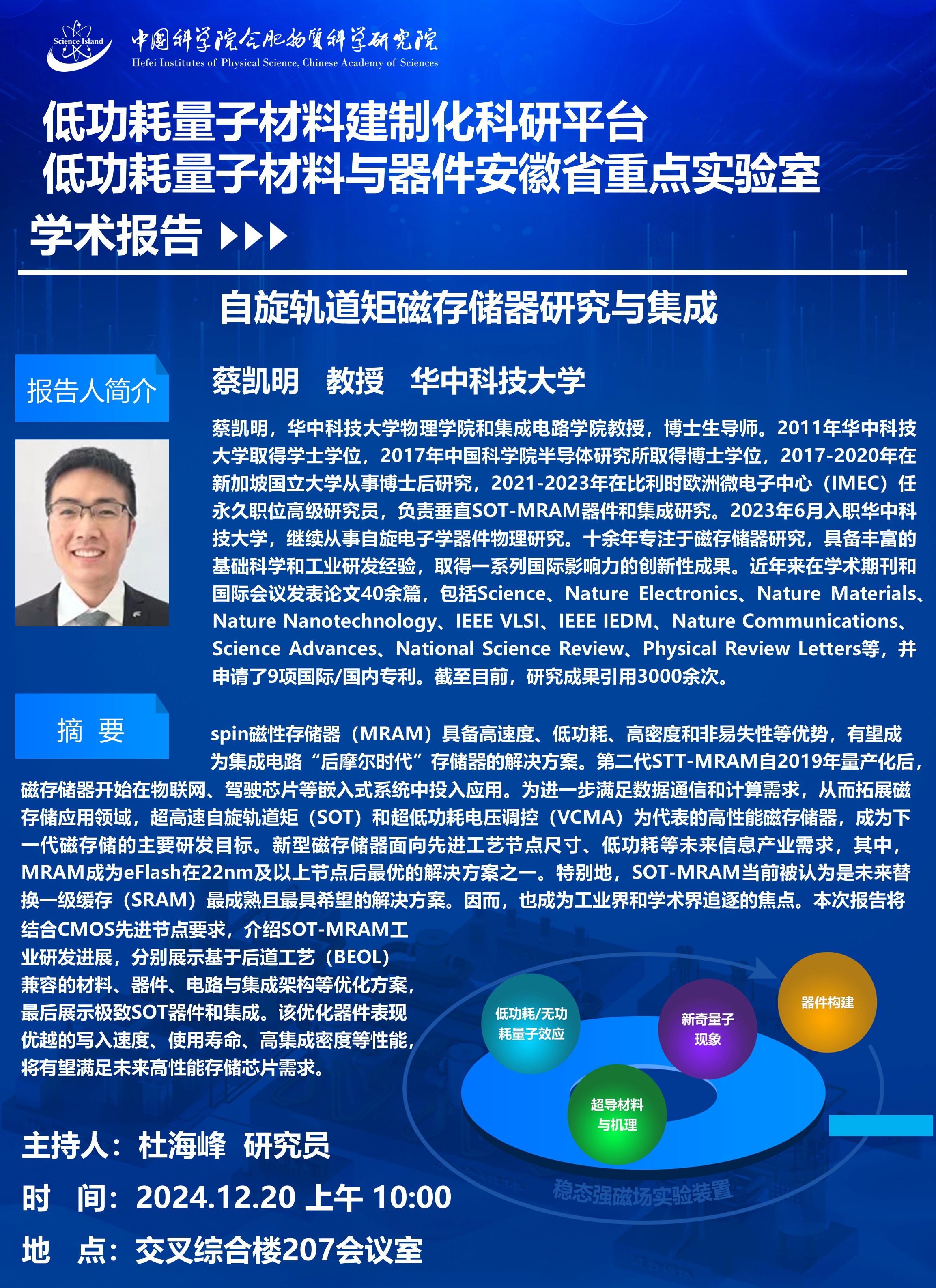 【12.20】學術報告:自旋軌道矩磁存儲器研究與集成