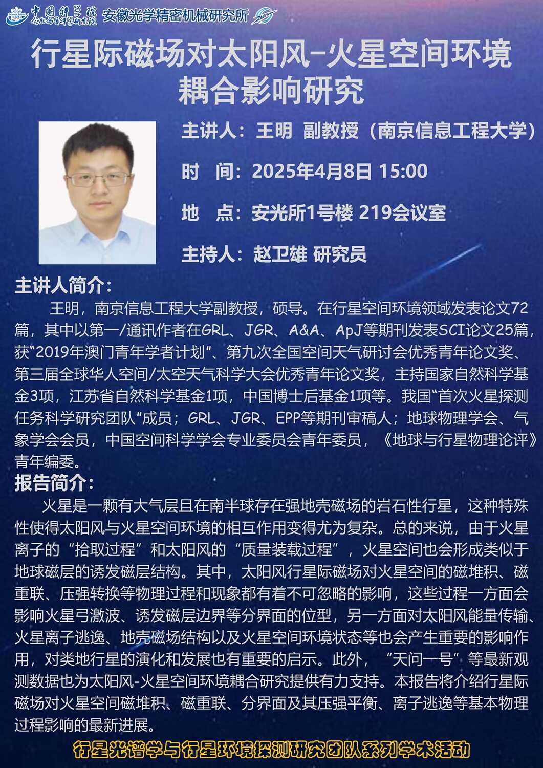 【4.8】行星際磁場對太陽風-火星空間環境耦合影響研究