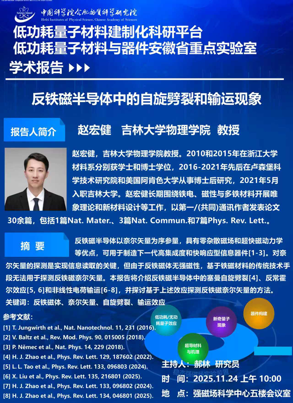 【11.24】學術報告:反鐵磁半導體中的自旋劈裂和輸運現象