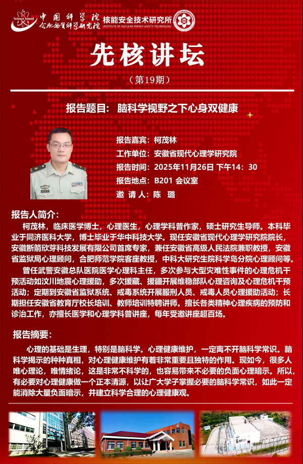 【11.26】學術報告:腦科學視野之下心身雙健康