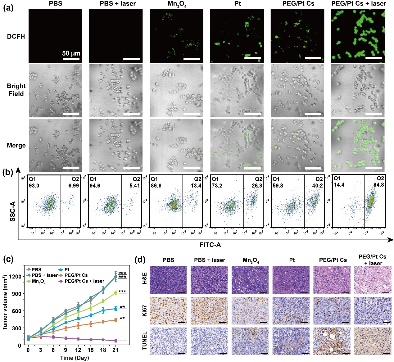 圖2. Pt Cs在小鼠體內的光催化腫瘤治療。