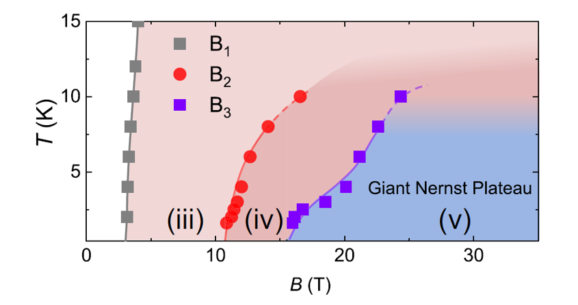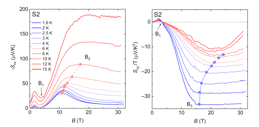 圖1. 弱拓撲絕緣體HfTe5強磁場下塞貝克效應和能斯特效應的測量結果