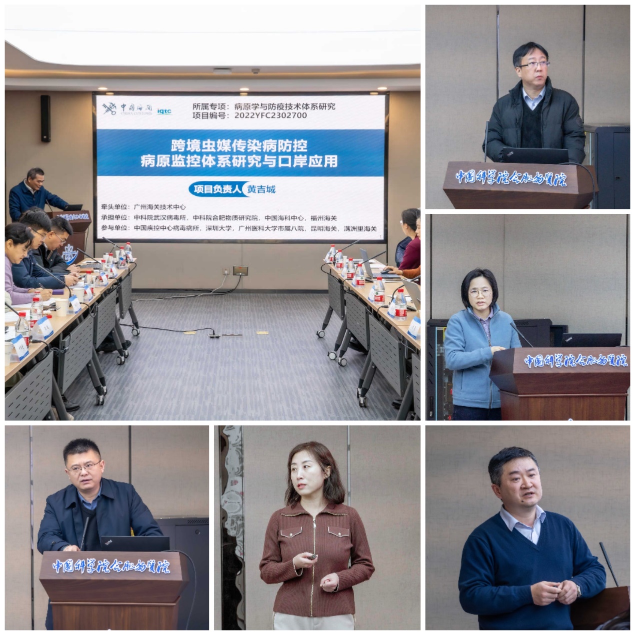 會議伊始,中國科學院合肥物質院副院長吳海信致歡迎辭,他對蒞臨會議的各位參會人員表示誠摯歡迎,簡要介紹了合肥物質院在相關領域的研究基礎與優勢,表達了對項目成功實施的堅定信心。項目負責人廣州海關技術中心副書記黃吉城對項目總體實施情況進行了介紹。廣州海關技術中心戴俊、中國科學院武漢病毒所夏菡、中國科學院合肥物質院安光所朱靈、中國海關科學技術研究中心喬彩霞、福州國際旅行衛生保健中心高博,分別代表五個課題詳細匯報了中期以來的研究進展、成果驗證與口岸應用示范方案等情況。