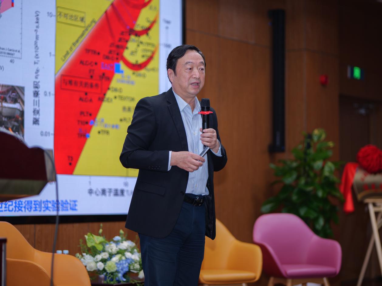 李建剛院士以“磁約束研究現(xiàn)狀及未來發(fā)展的幾個關(guān)鍵問題”為主題,帶來了一場深入淺出的學(xué)術(shù)報告。報告回顧了磁約束核聚變技術(shù)的基本原理及其在人類能源史上的重要地位,詳細(xì)介紹了磁約束核聚變技術(shù)的最新研究現(xiàn)狀,并重點(diǎn)探討了未來發(fā)展的幾個關(guān)鍵問題。他強(qiáng)調(diào)磁約束核聚變是一個充滿挑戰(zhàn)和機(jī)遇的領(lǐng)域,它需要我們一代又一代人的不懈努力和持續(xù)創(chuàng)新。希望研究生們以及青年科研人員能夠珍惜這個時代的機(jī)遇,勇于擔(dān)當(dāng)起科學(xué)研究的重任。交流互動環(huán)節(jié)中,現(xiàn)場的學(xué)生們抓住難得的機(jī)會,紛紛向院士提出自己的疑問和見解。院士耐心傾聽,一一解答,現(xiàn)場氣氛熱烈而融洽。